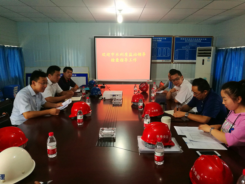 ? ? ? ? 7月17日上午9:30,濟南市水利工程質量監督站副站長孔德軍、高級工程師杜丙福一行人來到海河公司管理的濟南市大澗溝污水處理站工程現場,開展2018年度夏季水務建設項目質量監督巡查工作。