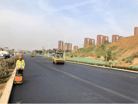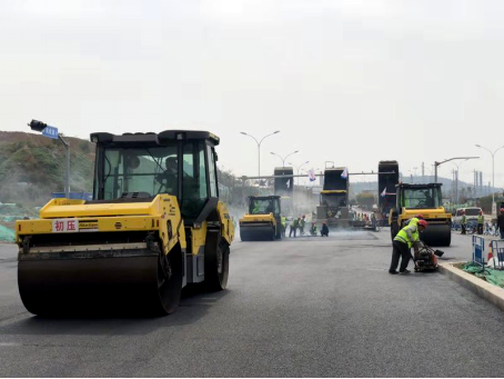 并投入多臺伸縮式攤鋪機、雙振壓路機、大寶馬壓路機、寶馬BW80AHD、平板振動夯以及小扁鏟、小笤帚等細部處理工具高度匹配作業。