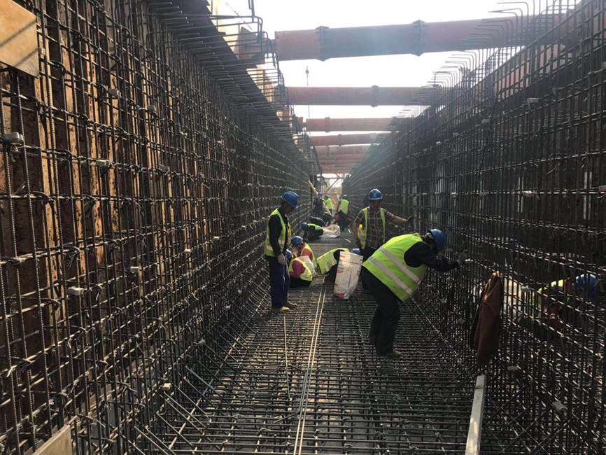 除卻此次澆筑,前期各道工序項(xiàng)目部均嚴(yán)格進(jìn)行標(biāo)準(zhǔn)化施工。對(duì)于鋼筋綁扎,經(jīng)驗(yàn)收合格的進(jìn)場(chǎng)鋼筋材料分別按規(guī)格、型號(hào)、批量堆放,并按規(guī)定進(jìn)行見證取樣檢驗(yàn),而后根據(jù)圖紙進(jìn)行精細(xì)連接;基坑支護(hù)完畢后開挖成槽,然后承載力實(shí)驗(yàn),實(shí)驗(yàn)合格后進(jìn)行后續(xù)墊層、防水、鋼筋綁扎、模板支架等系列施工。