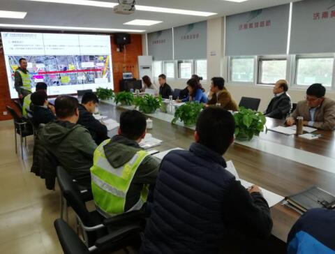 觀摩完施工現場,調研組來到項目部會議室,聽取了項目施工進展情況匯報,詳細了解項目施工進度、質量控制、安全生產、物資采購、成本控制、資金情況及農民工工資實名制發放等情況,并對存在的困難進行現場辦公。