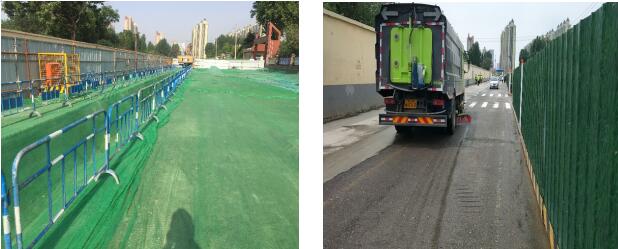 為打造“綠色、智慧、文明、開放”的城市道路施工理念,項目部認真貫徹落實“四個一律,六個百分百”揚塵控制要求,用實際行動進行安全文明環保施工。